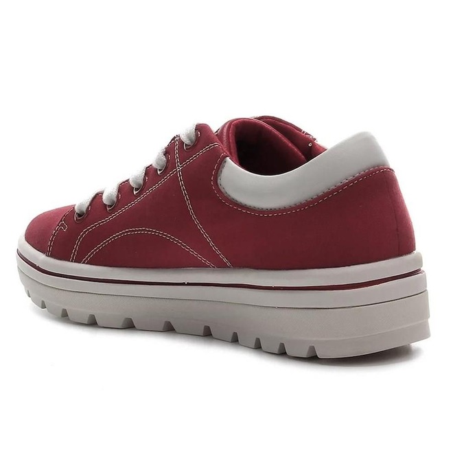 Possui cabedal confeccionado em material têxtil estruturado, traz costuras externas que dão um visual despojado para o calçado.