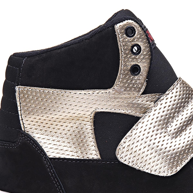 - Sobre o produto - Tênis Cano Alto RockFit U2 em Couro - Adulto- Tênis Cano Alto RockFit U2 em Couro Preto e Dourado O Tênis Cano Alto RockFit U2 foi desenvolvido especialmente para quem curte atividades físicas e ao mesmo tempo quer estar pronta para o rolê. - Nesta coleção ele vem de cara nova, com um solado exclusivo super moderno e as cores da estação. - Para quem procura um tênis para treinar, ele é ideal, deixando o seu look da academia com muito mais estilo. - E para quem procura um tênis para o dia a dia, este modelo completa seu estilo casual. - O Solado do Tênis Cano Alto RockFit U2 é feito em borracha, que te da muito mais estabilidade na hora da prática dos exercícios. - Todo forrado e almofadado por dentro, o tênis Cano Alto Preto Rock Fit U2 é extremamente confortável. - E sua Palmilha em PU tem 10mm, lhe proporcionando muito mais conforto para o uso no dia a dia. - Moderno, confortável e com um estilo único que só um RockFit pode lhe proporcionar. - Descrição do Produto: Cabedal: Couro Solado: Borracha Palmilha: PU 10 mm Fechamento: Cadarço e Velcro Cor: Preto e Dourado Marca: Rockfit OBS: Pode haver alterações de tonalidades de cor na imagem, Fotos Ilustrativas.. - . - Garantia contra defeito de fabricação. - ref: M01ZP0