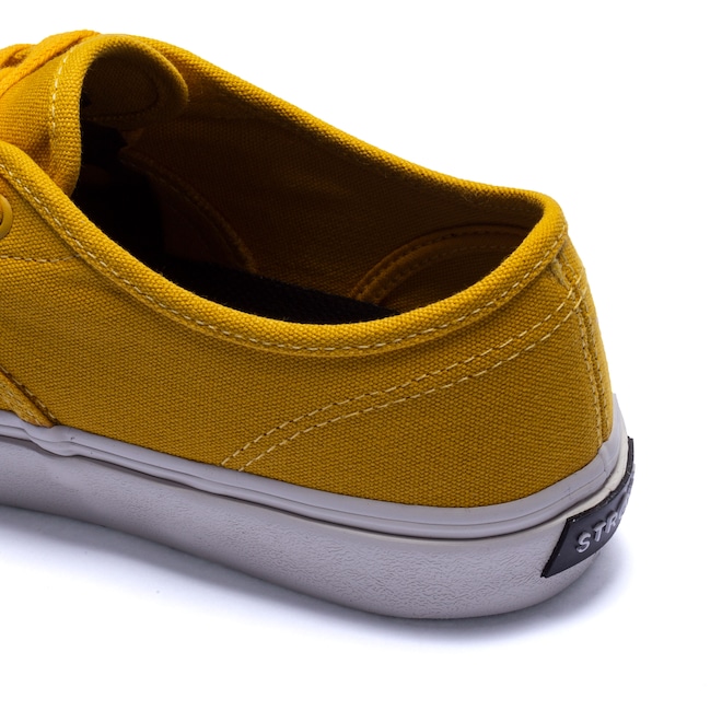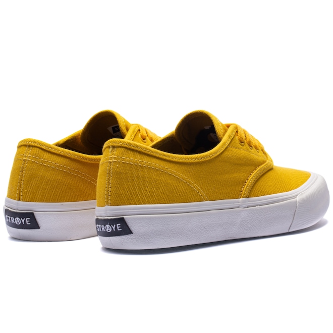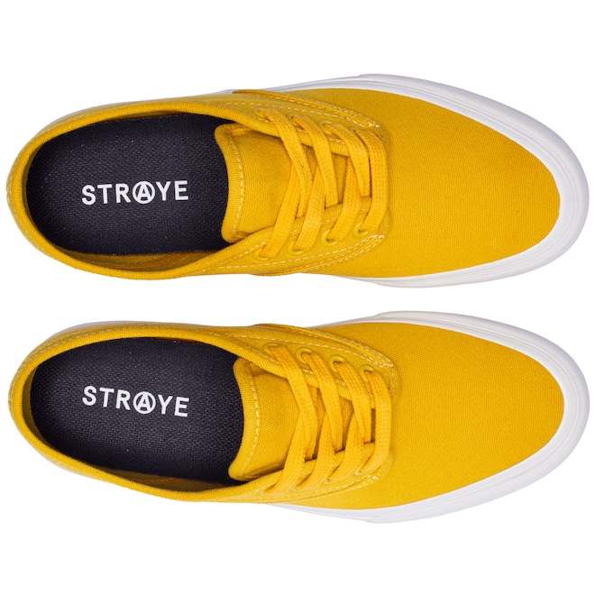 O tênis Straye tem cabedal (parte superior do calçado) em material têxtil, entressola e solado emborrachado.