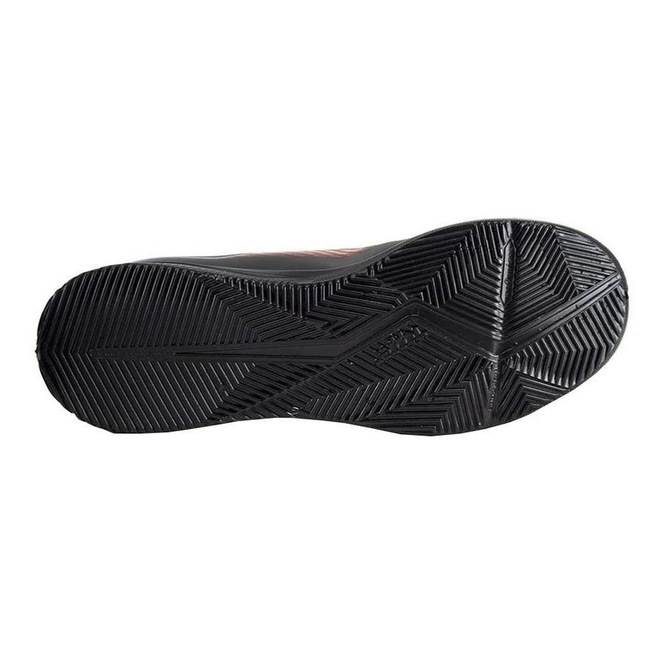 Na entressola dessa chuteira de futsal, uma camada em EVA oferece amortecimento leve para não sentir o peso e ir pra cima.