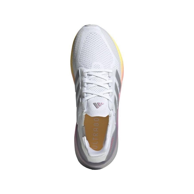 Inovado para oferecer mais amortecimento, maior conforto e menor peso, o Ultraboost 5 chegou para transformar sua experiência de corrida, aproveitando ao máximo a sua energia. A ENTRESSOLA deste tênis é feita com LIGHT BOOST, nosso sistema de amortecimento com maior retorno de energia utilizando a tecnologia Boost. O Ultraboost 5 também conta com SUPORTE EXTERNO MOLDADO NO CALCANHAR para mais suporte onde é necessário. O cabedal PRIMEKNIT cria o ajuste perfeito, enquanto nosso sistema TORSION oferece orientação de alto nível durante toda a sua marcha natural. Por fim, a aderência excepcional do SOLADO CONTINENTAL? proporciona tração e transição perfeitas.