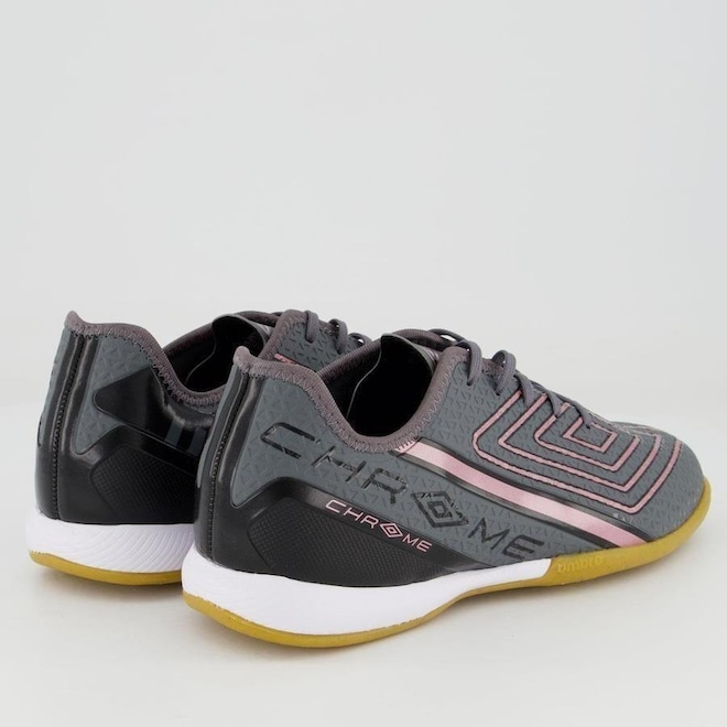 Com design moderno e diferenciado, o Tênis Umbro Futsal Chrome Masculino conta com logo com leve brilho, sendo uma ótima opção para seus jogos de futsal. Confortável e estiloso, possui cabedal macio com acabamento texturizado, solado emborrachado e forro têxtil acolchoado. Principais características do Tênis Umbro Futsal Chrome Masculino:Cabedal: PoliésterSolado: BorrachaPalmilha: EVAFechamento: CadarçoLingueta: PoliésterForro: TêxtilLogo: Umbro, na lateralTipo de Pisada: NeutraIndicado Para: FutebolTipo: FutsalOrigem: Nacionalref: M104FR