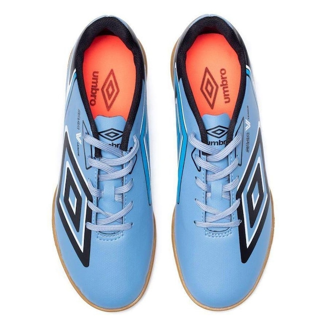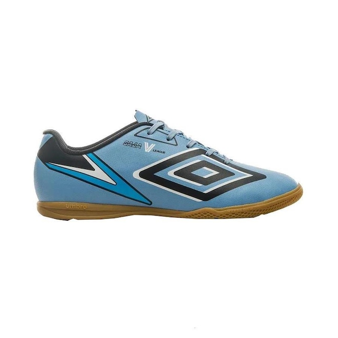 Desenvolvida para jogadores rápidos e habilidosos, a Chuteira Futsal Umbro Sala V League Azul Claro conta com design ousado e áreas de texturas para otimizar o controle direcional da bola. O modelo é confeccionado em material sintético com forro traseiro em Mesh para maior respirabilidade. Possui palmilha de EVA e fechamento com cadarço para um ajuste mais firme nos pés. O solado feito em borracha garante mais aderência para o jogo em quadras.