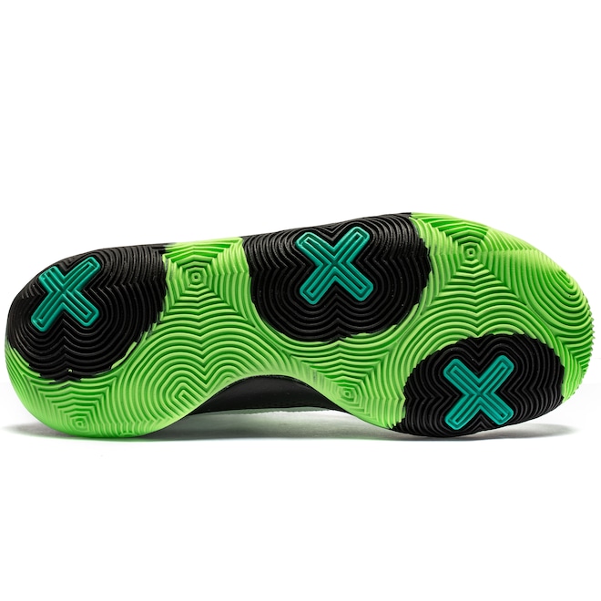 O tênis apresenta solado emborrachado que garantem maior estabilidade e aderência em todas as superfícies.