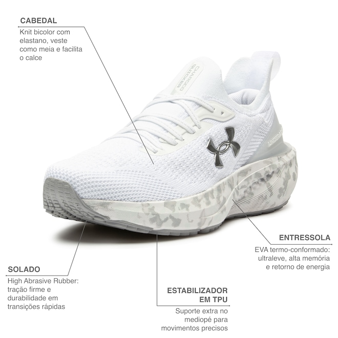Reforço acolchoado- Tipo de Amarração - Cadarço - Estampa do Logo - Estampado no Cabedal - Passante - Em Tecido - Garantia do Fornecedor - Contra Defeito de Fabricação - Conteúdo da Embalagem - 1 Par - SAC do Fornecedor - UNDER ARMOUR: 0800-701-06-20 / contato@underarmour.com - Pisada - Neutra - Terreno Indicado - Academia/Esteira