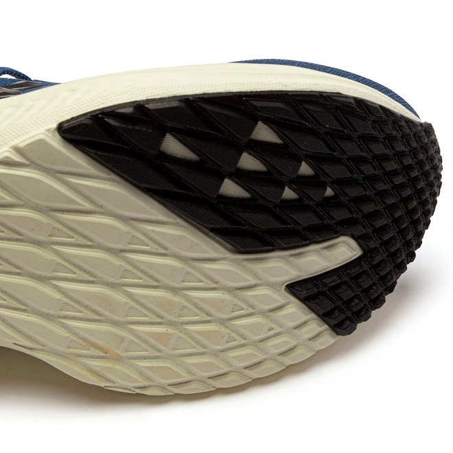 A entressola com tecnologia Charged Cushioning™ utiliza EVA injetado de baixa densidade, proporcionando um amortecimento macio, resposta rápida e menor deformação com o uso contínuo.
