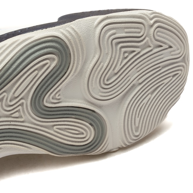 Possui detalhes acolchoados em áreas estratégicas que ajudam a diminuir o desconforto do atrito com entressola macia em EVA que oferece leve e duradouro amortecimento.