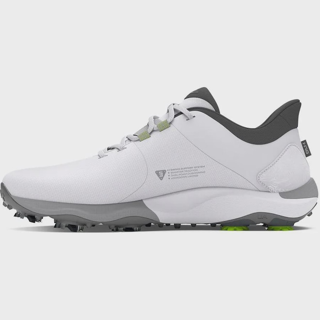 Os novos tênis de golfe UA Drive Pro foram projetados biomecanicamente e testados em laboratório para proporcionar a tração e o suporte diagonal e lateral de que seus pés precisam para liberar a potência de seu movimento natural.