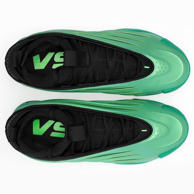 Já o solado de borracha aderente proporciona tração ideal para dribles rápidos e arremessos de longa distância.