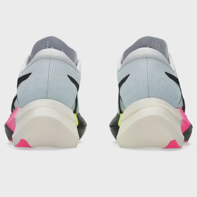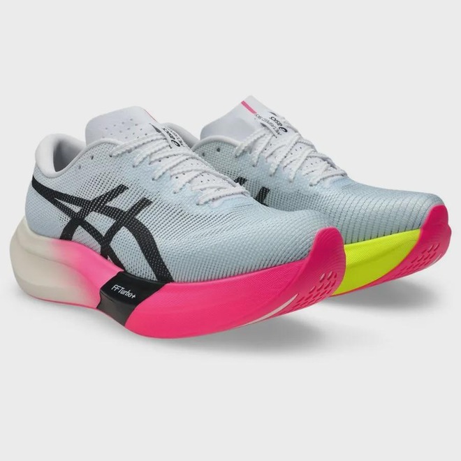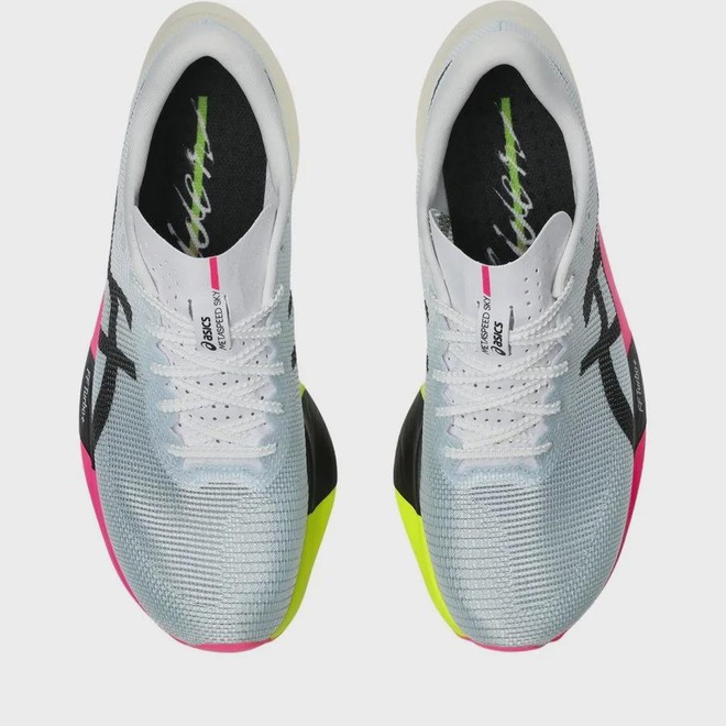 O METASPEED™ SKY PARIS foi projetado para corredores com estilo de passadas mais largas que desejam correr mais rápido. Os corredores que usam esse calçado serão capazes de aumentar sua velocidade conforme alargam sua passada e conservando energia a cada passo. ?Graças a uma espuma mais energética na entressola e a uma placa de carbono propulsora, os corredores serão capazes de conservar mais energia enquanto mantêm o ritmo para atravessar a parede dos 30km facilmente. Além da construção mais leve, também conta com a nova entressola FF TURBO™ PLUS. Isso ajuda a melhorar ainda mais a economia de energia.Cabedal MOTION WRAP™ 2.0 foi projetada para melhorar a respirabilidade e o confortoO amortecimento FF TURBO™ PLUS melhora a compressão e ajuda a proporcionar mais economia de energiaO design curvo da sola ajuda os corredores a economizar mais energia em cada passadaA placa de carbono guia o pé ao longo da passada e impulsiona-o para a frenteA sola de borracha ASICSGRIP™ melhora a durabilidade e a aderênciaPelo menos 50% do cabedal é feito com conteúdo reciclado para reduzir resíduos e emissões de carbonoA palmilha é produzida com o processo de tingimento em solução que reduz o uso de água em aproximadamente 33% e as emissões de carbono em aproximadamente 45% em comparação com a tecnologia de tingimento convencional-