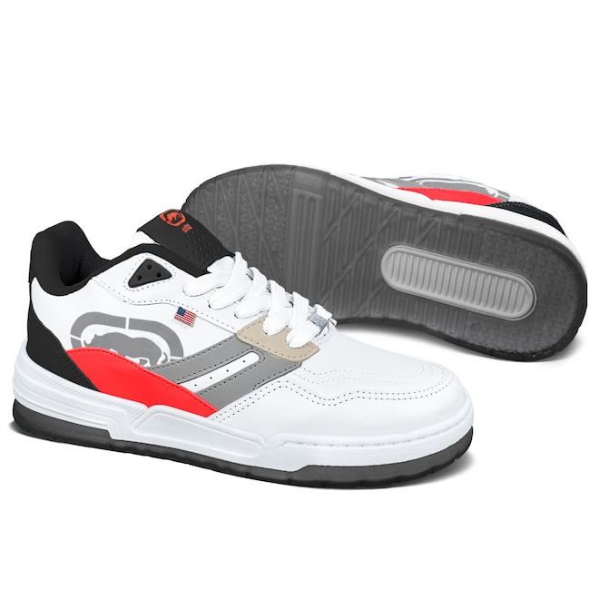 • Combine o Tênis ECKO Hawk Branco Vermelho com calças jeans, cargo ou moletom para compor um look streetwear marcante.