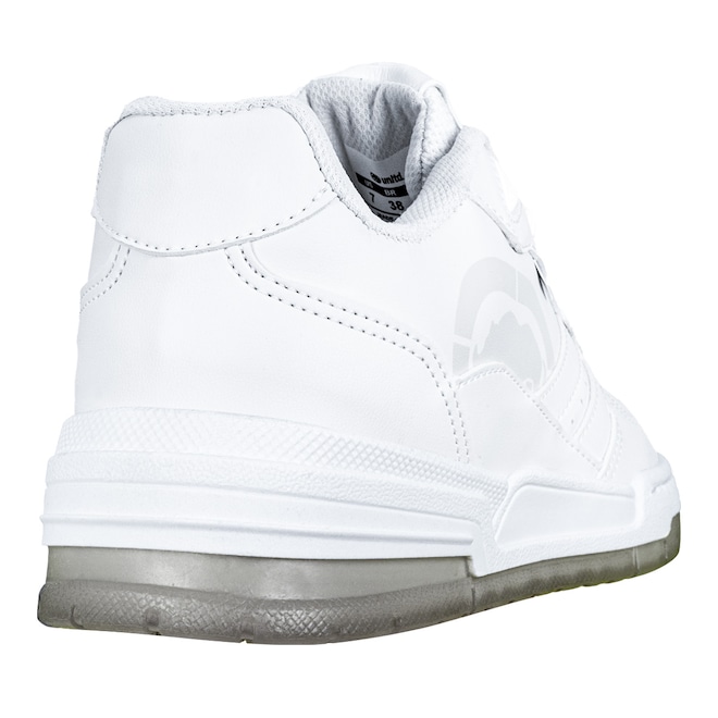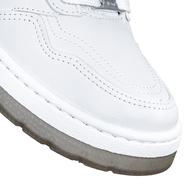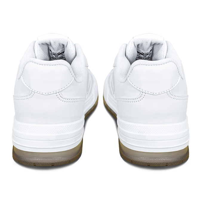 - Cabedal resistente: Material sintético de alta durabilidade com acabamento fosco branco e toque macio.