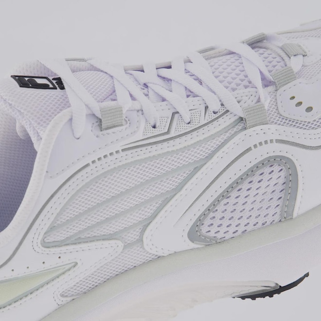 Composição cabedal (parte superior): Combinação de mesh, materiais sintéticos e couro