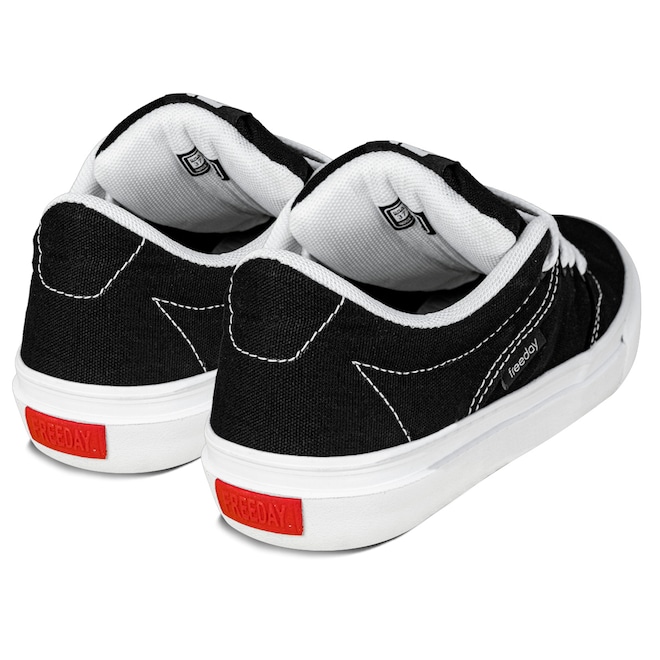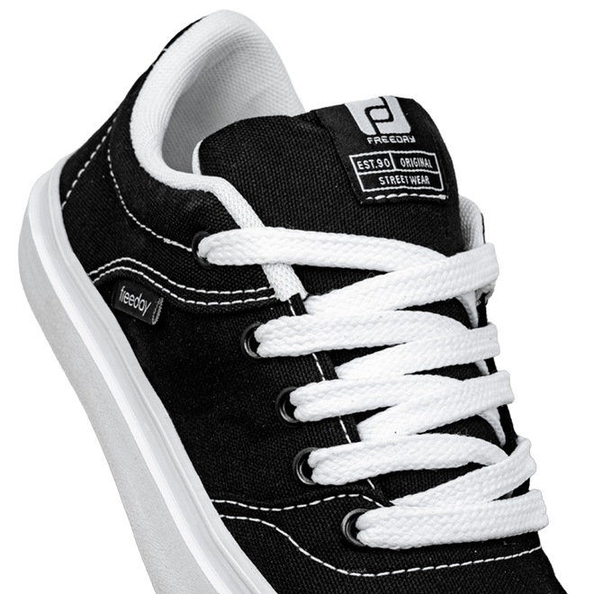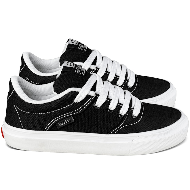 O visual preto e branco é atemporal e combina facilmente com diferentes looks — de produções casuais até composições streetwear. A sola vulcanizada de borracha natural oferece alta durabilidade, aderência e flexibilidade, garantindo controle e segurança tanto nas manobras quanto nas caminhadas.