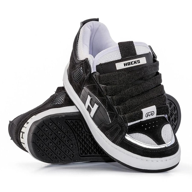 É hora de voltar ao passado e viver a essência do skate. O Tênis Unissex Hocks Bold Petitpoa é um modelo que combina estilo, conforto e uma incrível inspiração nas clássicas silhuetas dos anos 2000. Seu cabedal é uma verdadeira obra-prima, contando com mais de 90 peças na sua construção, principalmente em couro natural com detalhes refletivos, lingueta com bolso mocado, calcanhar super acolchoado e cadarço fatlace. Ref.: R190.004001