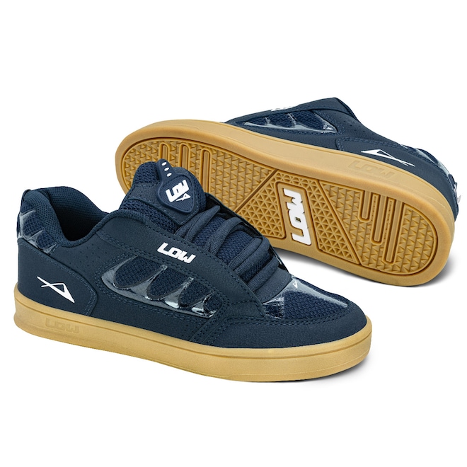 Além disso, a biqueira TPU reforçada aumenta a proteção contra desgastes e impactos, garantindo maior resistência ao uso contínuo. A combinação da cor azul-marinho com solado caramelo traz um toque sofisticado e urbano, tornando o modelo perfeito para diversas ocasiões e estilos.
