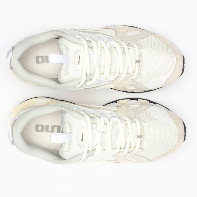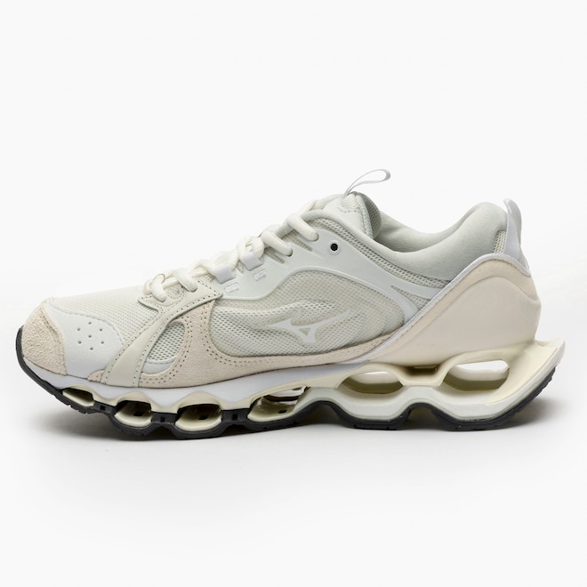 Mizuno Wave®: Nova geração da tecnologia Wave, que garante a efetividade inicial de amortecimento do tênis durante 500 km de uso, garantindo 100% da performance do sistema e proporcionando maior dissipação de impactos.