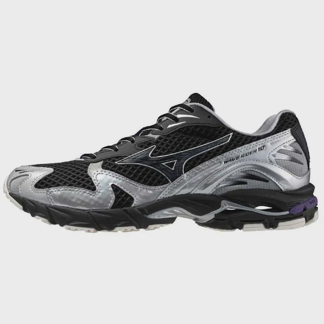 O Wave Rider 10 do Millennium Pack é uma homenagem à tendência Y2K. Foi uma era de inovação e uma mentalidade de quebrar fronteiras e redefinir identidades por meio da tecnologia e fusão digital. Também é uma homenagem à vida noturna, com forte inspiração nas casas noturnas de Londres e Berlim, como ecos de uma era perdida onde luzes escuras e prata fluem juntas. Com este pack, queremos destacar nossa conexão com as tendências e o espírito de inovação, focando no público antenado à moda. Em termos de cores e materiais, o preto brilhante e o prata metálico brincam com o reflexo perolado, malha de diamante e acabamentos reflexivos. Para tornar ainda mais especial, também usamos roxo e índigo violeta como realce de cor.