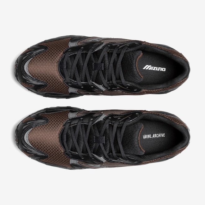 Fundada em 2009, Vainl Archive é uma marca japonesa de vestuário com raízes nos primeiros dias de Harajuku e na cultura de rua. Também possui uma forte ligação com a arte, colaborando com diversos artistas no Japão e no exterior. No tênis a língua teve remoção do TPU e aplicação de mesh Russell com detalhes orgânicos , ilhós inferior: textura listrada, barra dos ilhós: detalhe refletivo, biqueira (ponta do pé): detalhe refletivo , ilhós superior: textura listrada, toebox (parte frontal do cabedal): textura listrada, mudguard (proteção lateral inferior): acabamento anodizado. Logo da palmilha: diferente no pé direito e esquerdo, painel lateral: malha fina com leve efeito refletivo. Camada do calcanhar: detalhes em relevo, e calcanhar: refletivos furta-cor.