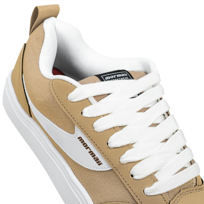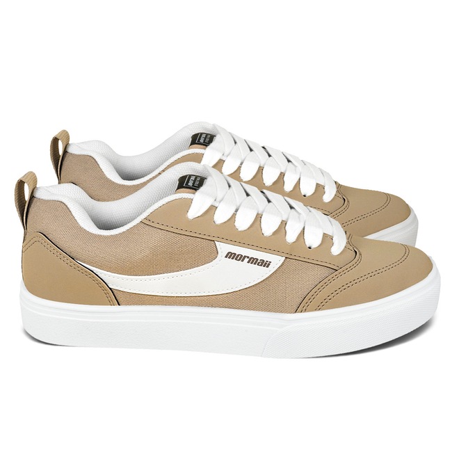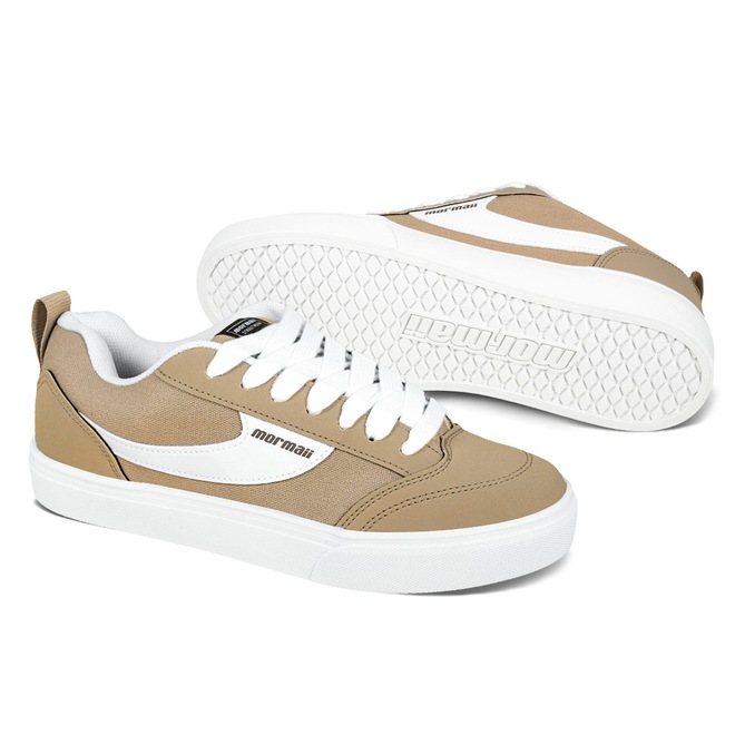 Conheça o Tênis Mormaii Urban Killian DK Sabe Brown White, o calçado ideal para quem busca um visual moderno, durabilidade e conforto no cotidiano. Parte da renomada linha Urban da Mormaii, este modelo se destaca pela sua construção robusta e flexibilidade, perfeita para o uso diário. Com um design contemporâneo em tons de bege e branco (DK Sabe Brown White), ele combina facilmente com diversos estilos. O cabedal é feito de material sintético laminado de 1,5mm, oferecendo grande resistência e é super fácil de limpar. A palmilha em EVA de 4mm, revestida em poliéster, garante um amortecimento suave, enquanto a sola em material micro expandido proporciona uma pisada macia e leve.