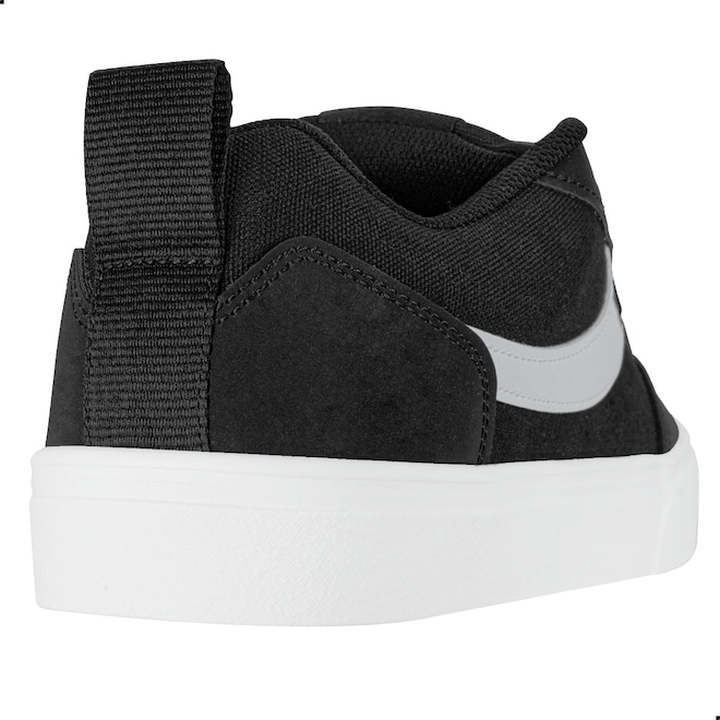 Seu design minimalista em preto com detalhes brancos garante versatilidade para compor desde looks casuais até produções streetwear mais modernas. O cabedal em material sintético laminado de alta resistência oferece durabilidade e fácil manutenção, enquanto a sola Urban Light — feita em material micro expandido — proporciona leveza e amortecimento suave, absorvendo o impacto do caminhar e diminuindo o cansaço dos pés durante o dia.