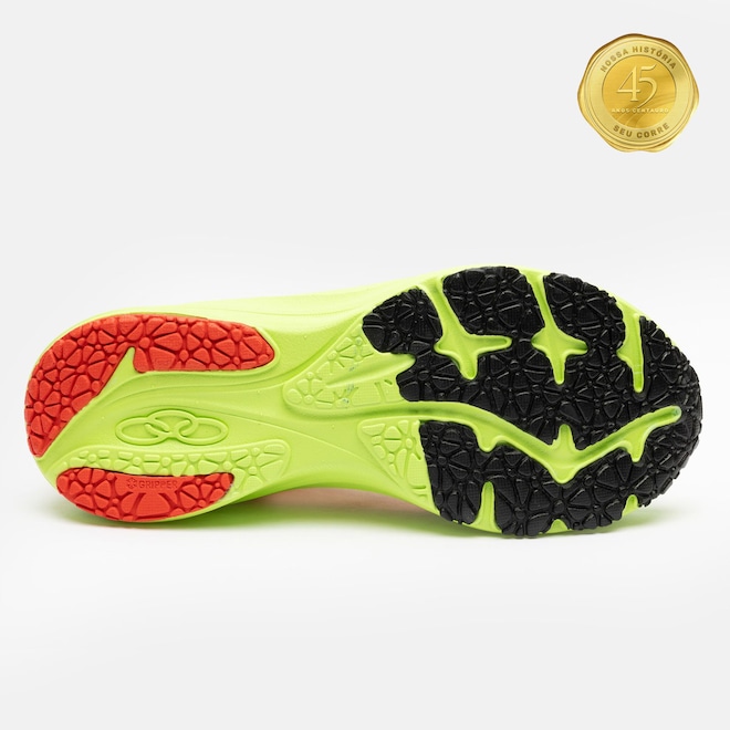 A inovação Gripper Plus, aplicada na planta do pé, é composta por borracha expandida premium, proporcionando maior propulsão e excelente amortecimento.