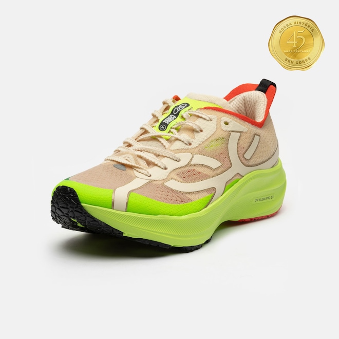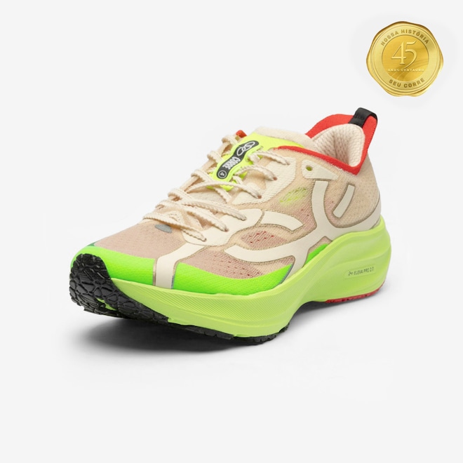 Equipado com a tecnologia ELEVA PRO, o amortecimento garante máxima resposta em cada passada, mantendo o conforto e a durabilidade que você precisa para encarar treinos e provas.