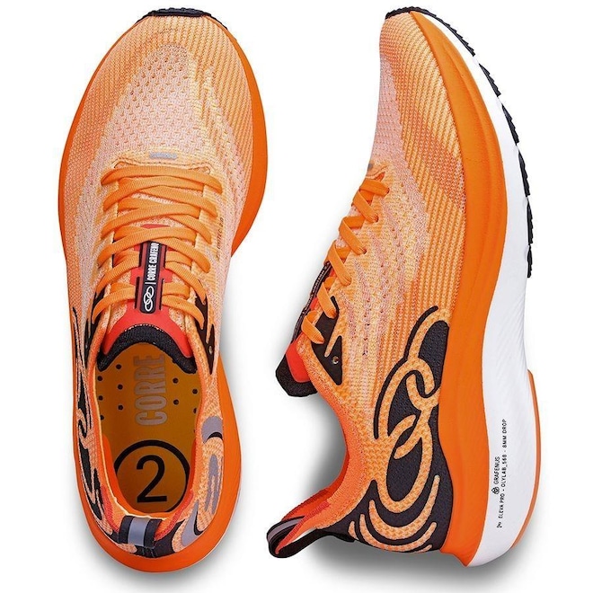 Possui ainda forro de elástica com suede e espuma, atacador em poliéster texturizado, peça refletiva para segurança noturna e nova arte com a identidade da Família Corre. Sua palmilha é plana, composta por EVA com Grafeno, para evitar a absorção de líquidos com tecido Premium de poliéster resistente respirável e com toque agradável.