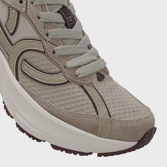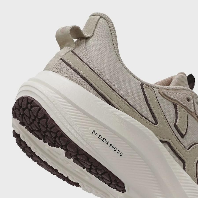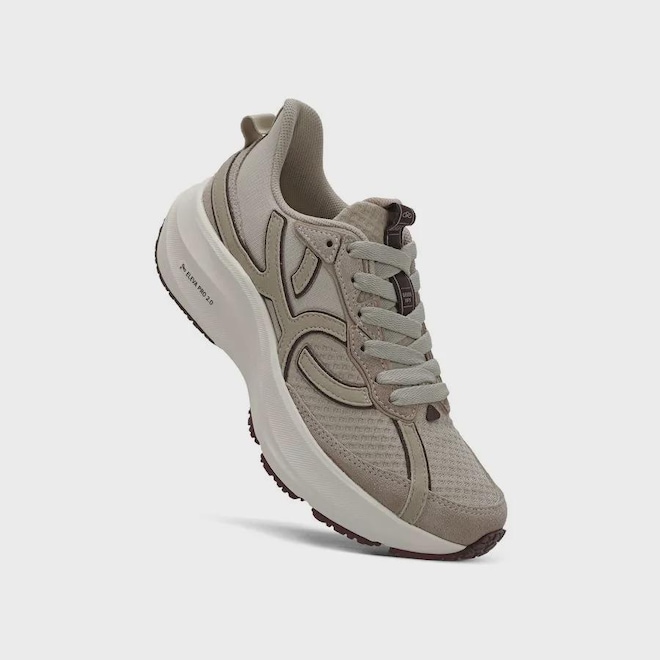 Gáspea elaborada com tecido em formato de favo composto por poliéster e elastano, traseiro em tecido ripstop quadriculado e vista em eco suede com camada sobreposta de camurça. O logo OLYMPIKUS e demais peças sobrepostas são aplicadas com materiais diferenciados como o suede e a camurça, que possuem textura macia e aveludada, proporcionando uma sensação de maciez e conforto. Lingueta confeccionada em tecido com formato de favo por uma mescla de poliéster e elastano, possui etiqueta bordada com o logo Olympikus. Atacador em fio poliamida com textura, garantindo uma amarração firme e visual aveludado. Forro em tecido poliéster oferece um maior conforto durante o uso. Puxador traseiro em fita foi projetado para facilitar o calce, tornando a experiência ainda mais confortável. Palmilha conformada composta por tecido poliéster resistente e transpirável e EVA para evitar a absorção de líquidos, conta com perfuros para reduzir seu peso. Solado com entressola que possui a tecnologia ELEVA PRO 2.0 que melhora os índices de resiliência e conforto. A nova versão da borracha GRIPPER PLUS garante firmeza no contato com o chão, sua nova formulação possui uma resistência à abrasão superior em 40% e 50% a mais de resistência ao deslizamento (Grip), garantindo mais segurança e durabilidade do solado.