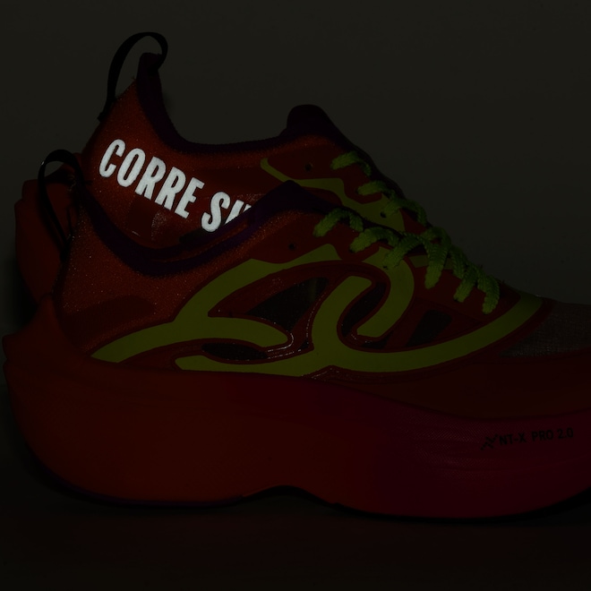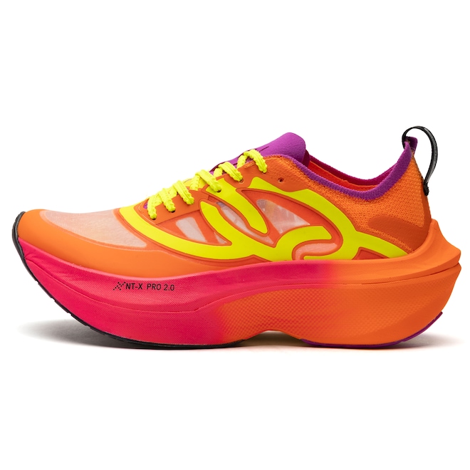 A entressola em NT‑X PRO 2.0 usa espuma PEBA expandida com nitrogênio para entregar amortecimento máximo, alta resiliência e retorno de energia explosivo.