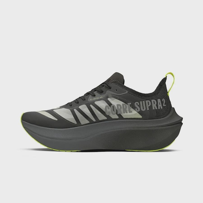 O Tênis Olympikus Corre Supra 2 conta com o cabedal com a tecnologia Oxitec 4.0, composta por uma tela que proporciona maior respirabilidade, resistência e leveza. Além disso, aplicações em TPU frequenciado acompanham toda a gáspea. A lingueta é confeccionada em Eco suede com perfuros, proporcionando maciez e leveza ao toque. O atacador foi projetado para aprimorar a experiência de amarração, garantindo um ajuste preciso e seguro. O forro interno, composto por uma mescla de poliéster e elastano, oferece conforto, durabilidade e flexibilidade. O puxador traseiro, confeccionado em fita, facilita o calce. A palmilha NT-X 2mm se destaca por ser leve, oferecer alto retorno de energia e proporcionar excelente respirabilidade, contribuindo para o conforto. O solado incorpora a tecnologia NT-X PRO 2.0, com entressola superior feita em PEBA expandido com nitrogênio (SCF), que proporciona o nível máximo de amortecimento, alta resiliência, baixa deformação e extrema leveza. Além disso, a placa CARBON-G, composta por fibras de carbono contínuas e bidirecionais revestidas com grafeno e projetada com nova geometria, maximiza a eficiência na impulsão e estabilização, garantindo rigidez elevada e maior desempenho. Para finalizar, o solado conta com borracha MICHELIN, que oferece alta resistência e propriedades antiderrapantes. O modelo apresenta um drop de 6mm.