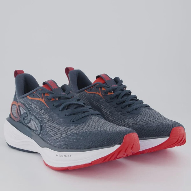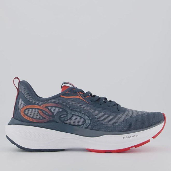 Tecnologias Eleva Pro 2.0: Oferece amortecimento avançado, retorna energia, absorve impactos, impulsiona as passadas. Gripper: Composto de borracha antiderrapante de alta durabilidade no solado, garantindo mais leveza. Composição cabedal (parte superior): Material têxtil respirável Palmilha: EVA, forrada e removível; facilita na higienização Forro: Material têxtil com acolchoamento no calcanhar Lingueta: Macia e acolchoada Solado: Borracha resistente, colado Altura da Sola: 5 cm Cor predominante: Azul Indicado para: Corrida Entressola: EVA leve Origem: Nacional Gênero: Unissex Ajuste: Cadarço Peso aproximado: 530g o par nº 40