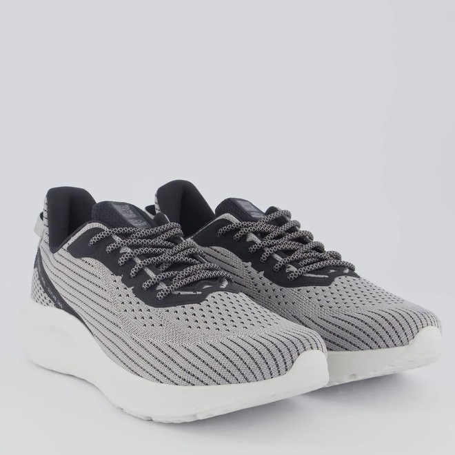 Tecnologias Eleva+: Explora o limite de expansa o do EVA Hypersox: Cabedal em formato de meia, leve e flexível. Fácil de calçar e com ajuste perfeito aos movimentos do pé. Composição cabedal (parte superior): Têxtil com parte em sintético Forro: Têxtil com acolchoamento reforçado no calcanhar Palmilha: Em EVA forrado e removível Solado: EVA resistente e antiderrapante, colado Altura da Sola: 4 cm Entressola: EVA leve e macio Lingueta: Fina e macia Indicado para: Treino Cor predominante: Cinza Gênero: Unissex Origem: Nacional Ajuste: Cadarço Peso aproximado: 530g o par n° 40