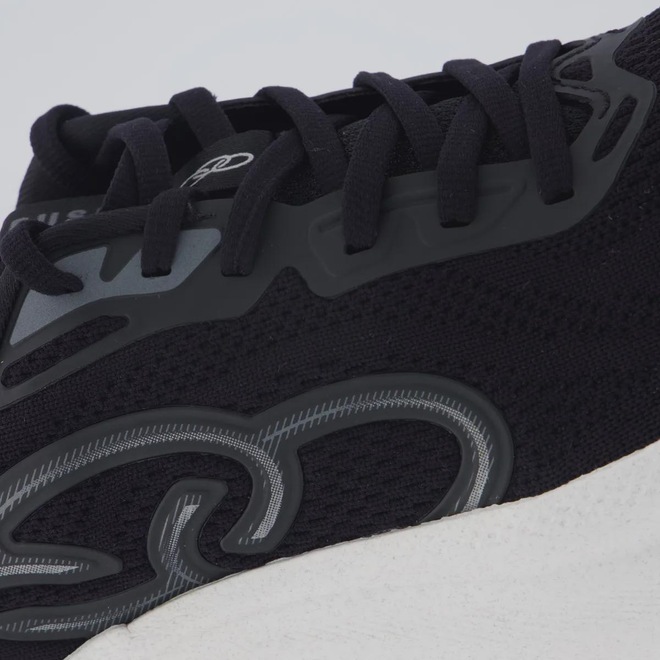Tecnologias HYPERSOX: Proporciona compressão graduada e suporte ergonômico aos pés ELEVA+: Potencializa a resiliência, leveza e conforto do modelo. Composição cabedal (parte superior): Material têxtil com partes em sintético Palmilha: EVA, forrada e removível; facilita na higienização Forro: Material têxtil com acolchoamento no calcanhar Solado: Borracha antiderrapante, colado Altura da Sola: 6 cm Cor predominante: Preto Lingueta: Macia e flexível Indicado para: Corrida Entressola: EVA leve Origem: Nacional Gênero: Unissex Ajuste: Cadarço Peso aproximado: 530g o par nº 40