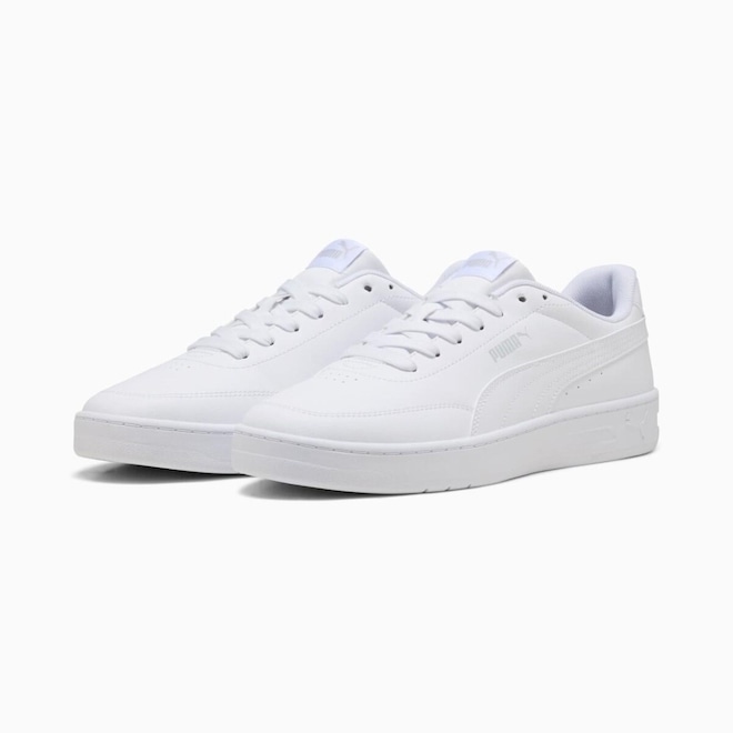 O Tênis Puma Court Classic Clean Unissex une design minimalista inspirado nas quadras com a tecnologia e conforto modernos. Ideal para uso casual, o modelo apresenta cabedal em material sintético de alta durabilidade, que facilita a limpeza e garante resistência ao uso diário. Seu interior acolchoado, com lingueta macia, oferece sensação de conforto a cada passo.