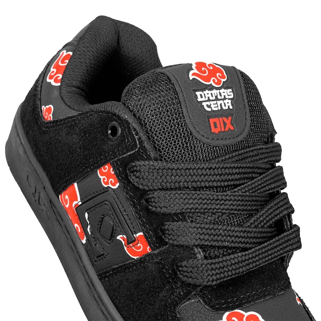 O estilo noventista encontra o universo otaku neste modelo exclusivo: o Tênis Qix Unissex Damascena 90s OG Pro Series combina a robustez do skate retrô com a estética marcante da Akatsuki, de Naruto. As nuvens vermelhas espalhadas pelo cabedal fazem referência direta à organização mais icônica do anime, garantindo identidade única e atitude nas ruas ou na pista. Assinado por William Damascena, esse tênis une performance profissional, materiais premium e visual poderoso — ideal para quem busca expressão e autenticidade.