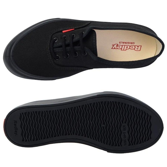 Conhecido por muitos pelo apelido de ''morcegão'' por conta de seu tom monocromático, o Tênis Unissex Redley Monocromo Preto é o tênis que fez sucesso nas décadas de 90 e 2000 na cor mais perfeita para combinar com qualquer estilo e cores possíveis, além de contar com suas etiquetas vermelhas, destacando a assinatura da marca. Sua composição no cabedal é de 100% algodão e seu solado combina borracha e látex para garantir maior flexibilidade e durabilidade sem perder o estilo clássico. Ref.: WZT-01