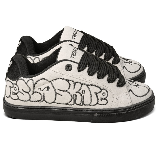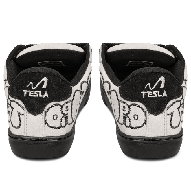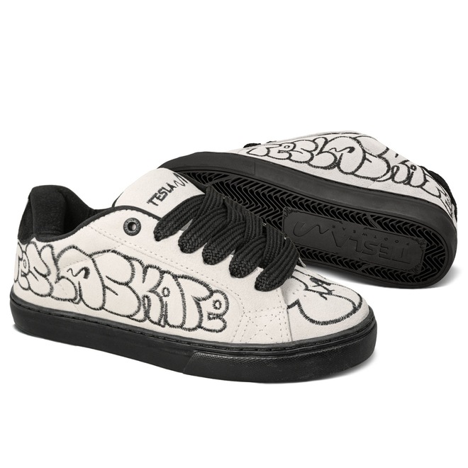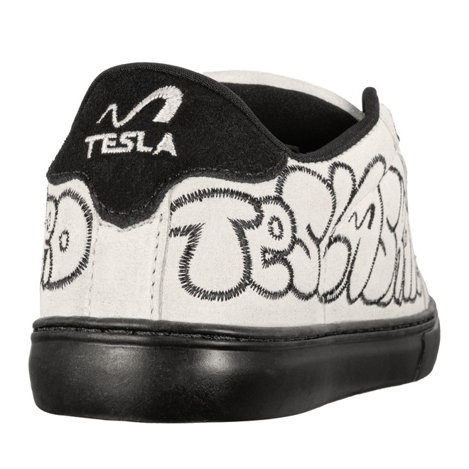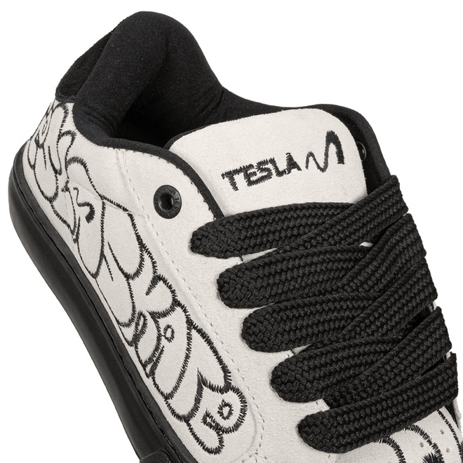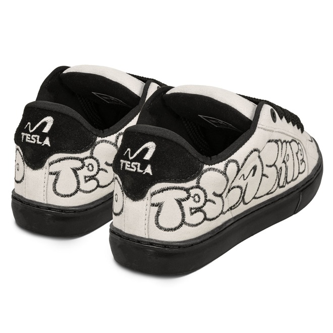 • Estampa bordada estilo graffiti “Tesla Skate” em toda a lateral