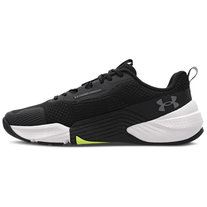 UA TriBase™: Esta é a tecnologia central do solado, que maximiza o contato com o solo em três pontos estratégicos, garantindo uma base estável e flexível. Isso permite uma maior naturalidade da passada e auxilia na execução de exercícios que exigem estabilidade lateral, como levantamentos e movimentos multidirecionais.