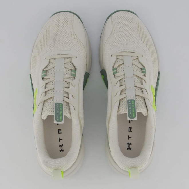 TriBase™: apresenta solado de borracha que maximiza o contato com o solo e promovem passadas mais naturais, suas laterais auxiliam na execução de exercícios específicos.Composição cabedal (parte superior): Material têxtil e sintético