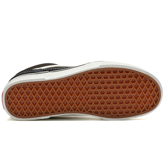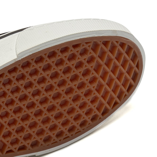 Já a entressola plana possui o reforço da tira emborrachada em toda a extensão com solado em borracha waffle exclusiva que oferece firmeza e estabilidade nas superfícies.