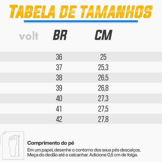 Você não vai querer tirar ele do pé.O Tênis Volt foi feito com tecnologias pensadas para maior conforto, durabilidade e estabilidade.