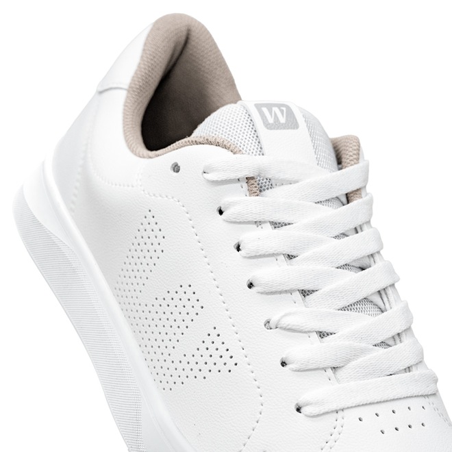 Com um visual minimalista marcado pelo icônico “W” perfurado na lateral, o modelo reforça o DNA urbano da West Coast. O solado em borracha branca proporciona leveza, estabilidade e excelente aderência, tornando-o ideal para o uso diário, seja no trabalho, passeios ou compromissos casuais.