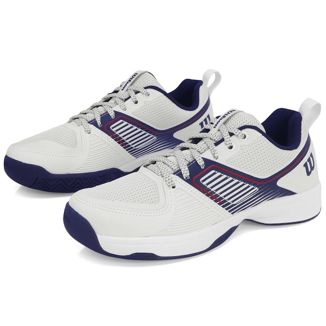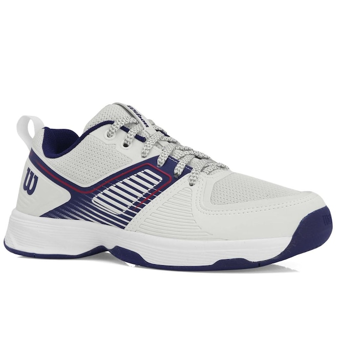 - Detalhamento: Fechamento convencional em cadarço, lingueta macia em mesh com escrita Wilson no topo, palmilha removível, logo Wilson nas laterais próximo ao calcanhar, biqueira reforçada;