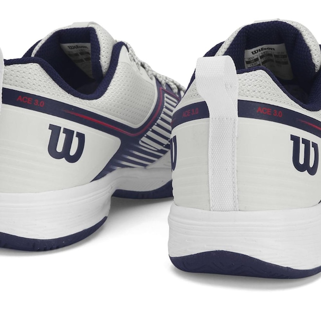 Descrição do Tênis Wilson Ace 3.0 - All Court - Branco Marinho e Vermelho