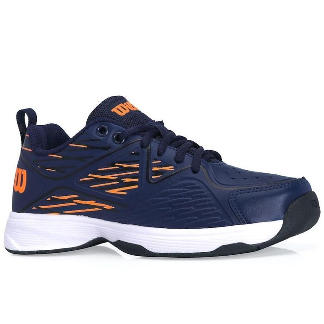 Conheça as Características do Tênis Wilson Slice 2 Marinho Preto e Laranja - Perfil: Tênis - All Court - Cabedal: Sintético - Entressola: EVA de alta densidade - Solado: Non-Marking, não marca o piso - Detalhamento: Fechamento convencional em cadarço, lingueta macia em mesh com escrita Wilson no topo, palmilha removível, logo Wilson nas laterais próximo ao calcanhar, biqueira reforçada - Peso por pé: Aproximadamente 291g (tamanho 38) - Garantia do fabricante: Contra defeito de fabricação - Origem: Nacional.