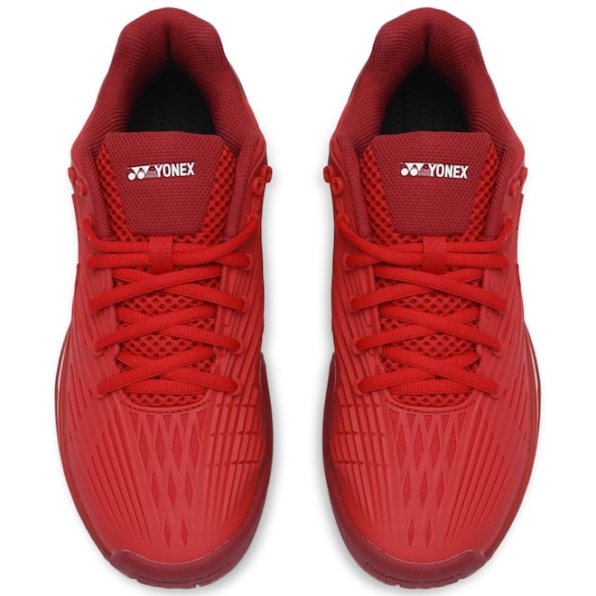 - Detalhamento: Fechamento em cadarço convencional, logo Yonex nas laterais, logo e nome Yonex no calcanhar e na lingueta, lingueta em mesh, design moderno, acabamento emborrachado por todo o cabedal;