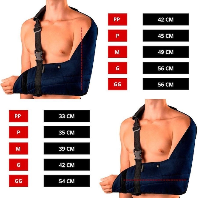 Indicado para: Fratura de colo do úmero e cotovelo, contusões, luxações, sequelas de ave (acidente vascular encefálico), período pós-operatório e apoio para gesso.