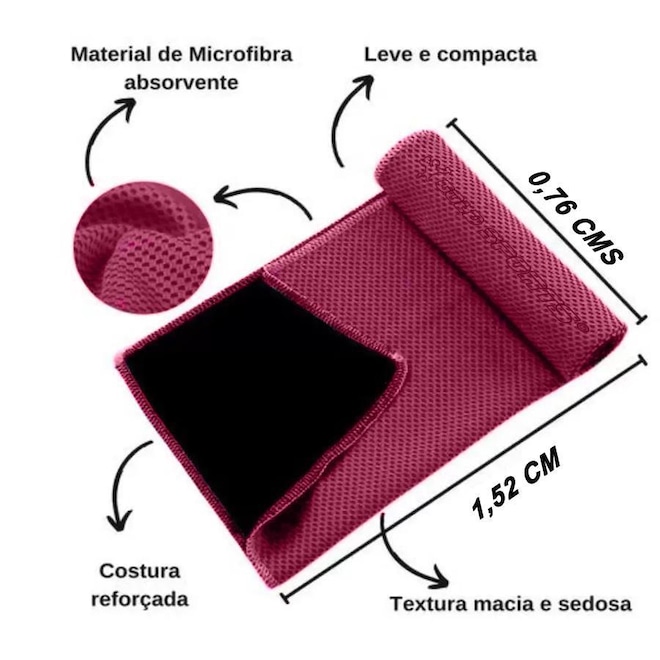- Sobre o produto - Toalha de Microfibra Gold Sports Ultra II Refrescante Cool - 76X152 cms- A Toalha de Microfibra Gold Sports Ultra Refrescante Cool II 76x 152 cms é perfeita para pessoas que sofrem de efeitos colaterais de estresse por calor, ondas de calor na prática de atividades ao ar livre e exercícios internos. Atua na prevenção de insolação, na proteção solar, resfriamento, absorção de suor e também como terapia para alívio da febre e dor de cabeça. A toalha de resfriamento é sedosa, macia, flexível e confortável, dobra-se facilmente. Esta toalha leves são utilizada para absorver água e suor, permitindo-lhe ficar seco, aliviando o calor e o mal estar. A tecnologia de tecido de fibra super absorvente da toalha de malha regula a água no interior e garante a retenção de água, por isso é tratada como um condicionador de ar e em segundos você esfria. Mantenha-se fresco durante os dias quentes de verão. Para ativá-la basta deixar de dentro da água por 1 minuto, tirar o excesso de água, sacudi-la e em seguida aproveitar a sensação refrescante, a toalha permanecerá fria por horas. Recomendada para todos os tipos de esportes ou quem deseja apenas se refrescar. Ao colocar no corpo sentirá o frescor da sua tecnologia de resfriamento instantâneo. É incrivelmente fácil de guardar, podendo ser levada para qualquer lugar. - COMPOSIÇÃO: Microfibra - Marca: Gold Sports - Garantia: 1 mês contra defeito de fabricação - BENEFÍCIOS: - ? Ideal para pessoas que sofrem de efeitos colaterais de estresse por calor, ondas de calor na prática de atividades ao ar livre e exercícios internos; - ? Atua na prevenção de insolação, na proteção solar, resfriamento, absorção de suor; - ? Atua no alívio da febre ou dor de cabeça; - ? Resfriamento rápido, bastando imergir em água; - ? Efeito de resfriamento que dura por horas; - ? Alivia o calor e o mal estar; - ? Acomodada ao corpo, você sentirá o frescor da sua tecnologia de resfriamento instantâneo; - ? Sedosa, macia, flexível e confortável, dobra-se facilmente; - ? Fácil de guardar, pode ser levada para qualquer lugar. - MODO DE USAR: - 1. Mergulhe a toalha em água fria por 1 minuto; - 2. Escorra o excesso de água e gire a toalha para ajudar na evaporação; - 3. Desfrute em volta do seu pescoço e cabeça, aproveitando a sensação refrescante - INSTRUÇÃO DE LAVAGEM: - ? Lavável na máquina para limpeza fácil; - ? Não use água sanitária ou amaciante; - ? Lave separadamente antes do primeiro uso - ref: M13PCQ