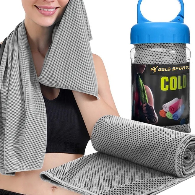 A Toalha de Microfibra Gold Sports Ultra Refrescante Cool II é perfeita para pessoas que sofrem de efeitos colaterais de estresse por calor, ondas de calor na prática de atividades ao ar livre e exercícios internos. Atua na prevenção de insolação, na proteção solar, resfriamento, absorção de suor e também como terapia para alívio da febre e dor de cabeça. A toalha de resfriamento é sedosa, macia, flexível e confortável, dobra-se facilmente. Esta toalha leves são utilizada para absorver água e suor, permitindo-lhe ficar seco, aliviando o calor e o mal estar. A tecnologia de tecido de fibra super absorvente da toalha de malha regula a água no interior e garante a retenção de água, por isso é tratada como um condicionador de ar e em segundos você esfria. Mantenha-se fresco durante os dias quentes de verão. Para ativá-la basta deixar de dentro da água por 1 minuto, tirar o excesso de água, sacudi-la e em seguida aproveitar a sensação refrescante, a toalha permanecerá fria por horas. Recomendada para todos os tipos de esportes ou quem deseja apenas se refrescar. Ao colocar no corpo sentirá o frescor da sua tecnologia de resfriamento instantâneo. É incrivelmente fácil de guardar, podendo ser levada para qualquer lugar.
